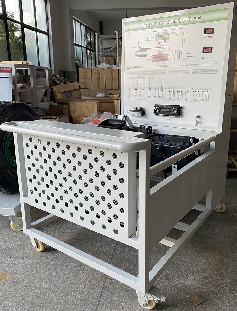 汽車空調系統實訓設備,汽車空調實訓臺,汽車空調實訓室是《汽車空調舒適系統檢修、汽車電器電子設備檢修、汽車保養與維護等課程實驗,用于了解手動、自動空調系統的基本構造及工作原理,認識各類傳感器及執行器的位置、工作原理及日常維護。可設置空調系統常見故障,并通過故障的維修和檢測,提高學生對空調系統電路和結構的理解能力。